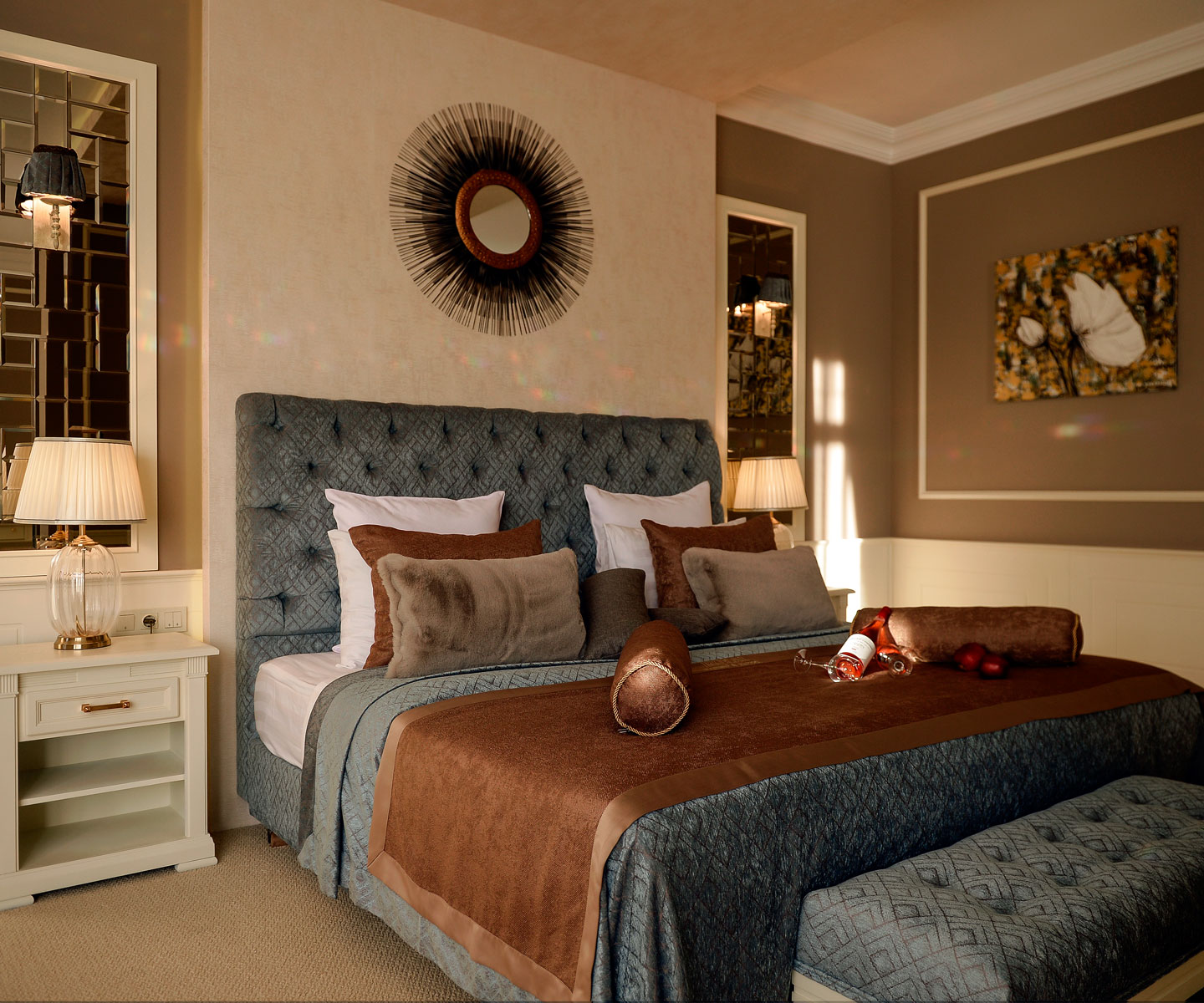 İçindeki yatma alanının oturma alanından bir bölme ile ayrıldığı geniş bir oda - junior süit, gezginlerin çoğu için rahat ve keyifli olmayı vadediyor. Ünlü Avrupa Meydanı ve Medea heykelinin panoramik manzarası, konaklamanızı olabildiğince konforlu hale getirecektir.